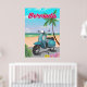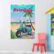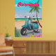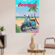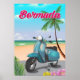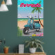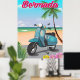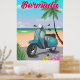 Bermuda Scooter Reiseplakat - Bermuda Retroposter mit einem Retro-Rollerrad am Sandstrand.