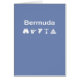 Schönes Bermuda-Design mit fünf typischen Ikonen des Landes, wie Shorts, Strandpail und Schaufel, Hurrikan oder Tornado, Leuchtturm-Sehenswürdigkeit und Bermuda-Dreieck. Weißes Design auf blau. Souvenir Ihrer Reise, Besuch, Kreuzfahrt oder Urlaub; wenn Sie nicht da sein können, dann erhalten Sie diese Karten. Gut, um sich an den Strand zu erinnern.