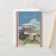 Jeder würde Liebe haben, diese Vintage, blumengeschmückte Postkarte mit einer Retro-Abbildung eines Paares in einer Kutsche an einem wunderschönen Strand auf der Insel Bermuda zu erhalten!