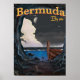 Retro altes Bermuda Urlaubsplakat. Bermudan Strandreiseplakat. Cartoon Höhlenposter.