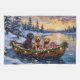 Bring lovable, fluffy charm to your holiday season with this adorable Bernedoodle Christmas design! This magical scene features three cute, curly-coated Bernedoodles (a mix of Bernese Mountain Dog and Poodle) sitting happily in a cozy wooden boat, gently floating on a serene snowy lake at sunset. The boat is beautifully adorned with glowing Christmas string lights and fragrant pine garlands, while the dogs wear festive scarves. They are surrounded by colorful wrapped presents and cheerful holly branches. Soft snowflakes gently fall, and the shimmering reflection of the lights on the water creates a truly magical winter holiday atmosphere. This design is a perfect Christmas gift for any Bernedoodle owner, dog lover, or admirer of festive and beloved hybrid dog art, capturing the serene joy of the season.