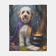 Treten Sie ein in eine zauberhafte Halloween-Nacht mit diesem skurrilen Ölgemälde mit einem hübschen, in einem Mini-Hexenschrank gekleideten Jungtier, das neben einem Kessel in einem schattigen Wald sitzt. Umgeben von glühenden Tränen, alten Zauberbüchern und funkelnden Zaubersprüchen ist die Szene voller Mysterien und Charme. Reiche, malerische Texturen und tiefe Halloween-Farbtöne sorgen für ein gemütliches, zauberhaftes Ambiente, das sich perfekt für sportliche Saisonliebhaber eignet.