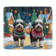 This festive design captures the joyful spirit of the holiday season, featuring an adorable dogs.Nestled in a winter wonderland, complete with a decorated Christmas tree, and beautifully wrapped presents. Snowflakes gently fall, adding a magical touch to the scene, while the vibrant colors of the holiday decorations create a warm and cheerful atmosphere.