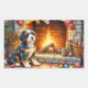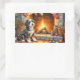 Bernedoodle Fireplace with Christmas Lights Rechteckiger Aufkleber