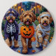 Bernedoodle Hunde Trick-or-Treating in Halloween C Button