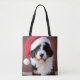 Niedliches Bernedoodle mit einer Weihnachtsmannmütze.