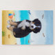 Der Berner Berghund am Strand ist eine Geschenkidee für jemanden, der diese Hunderasse Liebe hat.