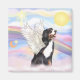 Ein Berner Hund probiert seine Flügel unter den flauschigen Wolken des Himmels aus, bevor er frei in die Regenbogenbrücke eintritt, wo Engel und Freunde warten.l