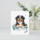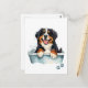 Niedlicher Hund Aquarellbild eines glücklichen Berner Hundes in einer Badewanne. Ideal für Hundefreunde.