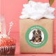 Im Mittelpunkt dieses niedlichen Holiday-Aufklebers steht ein Bild eines bezaubernden kleinen Berner Hundewelpen, der seinen Winterschal trägt. Das Bild ist in einem kreisrunden grünen Rahmen gerahmt, der den benutzerdefinierten Text in Weiß enthält. Ideal für Weihnachtskarten, Korrespondenz und Geschenkpakete.
