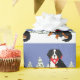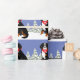 Bernese Mt Hund mit schweizer Kreuzung roter Bandana. Schneesicherer Winterhintergrund. Niedliches Packpapier für Bierliebhaber!