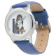 Kinderuhr aus Edelstahl mit blauem Lederarmband