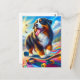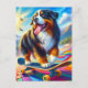 AI generierte Kunst eines Berner-Hundeschlittschuhfahrens auf bunten Ziegeln mit Bergen im Hintergrund