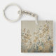 Dieser Schlüsselanhänger zeigt eine himmlische, wieseninspirierte Landschaft, die in einem zarten Aquarellstil dargestellt ist. Stiele von Wildblumen und kleeartigem Laub strecken sich gegen einen warmen, leinenstrukturierten Hintergrund nach oben, wodurch eine taktile, stoffähnliche Erscheinung entsteht.