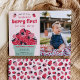 Dieses beersüße Design besticht durch einen Korb frisch gepflückter wasserfarbener Erdbeeren. Bearbeiten Sie mit Ihren Party-Informationen und dem Foto Ihres Kindes. Sehen Sie sich die gesamte Kollektion an, um mehr passende Artikel zu finden!