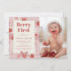 Berry First Birthday Pink Bow Cute Photo Einladung