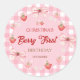 Berry first birthday pink gingham strawberry girl runder aufkleber
