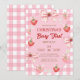 Berry first birthday pink strawberry gingham girl einladung
