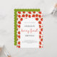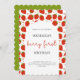 Scallop roter Erdbeerbogen Geburtstagseinladung in Grün und Rot mit einem Beerengeburtstil, perfekt zum Drehen eines kleinen Mädchens. Illustriert und entworfen von Patricia Alvarez.