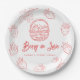 This cute and modern "berry in love" bridal shower paper plate features hand-drawn illustrations of strawberries in the basket and strawberries in pink. Personalize for your needs. You can find more matching products at my store.