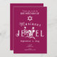 Wilde Beerenrosa Fledermaus Mitzvah Einladung mit schöner weißer Typografie hat weiße Blume, die Sie bewegen und mit Ihrer Schrift verändern können. Botanische Kunstwerke können mit Ihrer Schrift farblich verändert werden. Ändern Sie einfach die Hintergrundfarbe auf dieser einfachen und einzigartigen Fledermausmitzvah-Einladung. Diese Vorlage ist für jedes heiße Rosa, Pflaume, Himbeere Geburtstagsthemen leicht anpassbar.