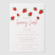 Berry süße Erdbeere 1. Geburtstagseinladung mit rotem Obst und Schachbrettmuster Hintergrund.