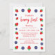 Berry süße Einladung zum 1. Geburtstag mit Erdbeeren und Heidelbeeren mit Picknickhintergrund im Schachbrettmuster.