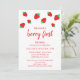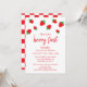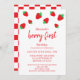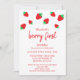 Berry süße Erdbeere 1. Geburtstagseinladung mit rotem Obst und Schachbrettmuster Hintergrund.