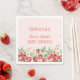 Eine süße Babydusche mit Sommerbeeren-Thema. Die Serviette "Berry Sweet" ist mit einem süßen rosa Hintergrund, Erdbeeren und blühenden Erdbeeren-Pflanze gestaltet. Es beinhaltet elegante Serifen und handgeschriebene Schriftart für eine charmante Touch. Das Design ist vollständig mit Veranstaltungsdetails anpassbar und eignet sich ideal für eine Frühjahr- oder Sommerdusche.