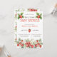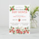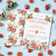 Eine süße Baby-Dusche mit Sommerthema Erdbeeren. Die Einladung "Berry Sweet" ist ganz in Weiß gehalten, mit illustrierten Erdbeeren und blühenden weißen Erdbeeren-Blume. Es beinhaltet elegante Serifen und handgeschriebene Schriftart für eine charmante Touch. Das Design ist vollständig mit Veranstaltungsdetails anpassbar und eignet sich ideal für eine Frühjahr- oder Sommerdusche.