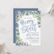 A cute 'Berry Sweet' baby shower theme featuring watercolor blueberries with green leaves. Perfect for a boy baby shower, but also works for a girl! A bold handwriting script typography mixed with a simple serif font. Blue and navy blue fonts, but you can change them out to whatever you'd like. You can also change the background color on the backside. Berry Sweet Blueberry Baby Shower Invitation.