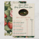 Dieses wunderbare Spiel bietet eine Touch von Kunst und Geschichte mit dem bezaubernden Meisterwerk "Strawberries and Cream" c.1816 von Raphaelle Peale, das die Front bildet. Seine zeitlose Schönheit verleiht jedem Brautparty eine elegante und feminine Touch. Sie finden lustige und einnehmende Fragen, die dazu dienen, Ihr Wissen über Braut und Bräutigam zu testen. Passen Sie die Fragen an, um die Persönlichkeiten des Ehepaares zu Anzug zu bekommen, und machen Sie es zu einem Spiel, das so besonders ist wie sie sind. Mit einer wasserfarbenen Erdbeere und einer blühenden Abbildung auf der Rückseite bietet dieses Spiel nicht nur Unterhaltung, sondern auch eine visuelle Leckerei für alle.
