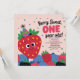 "Feiern Sie Ihren ersten Geburtstag mit dieser beerenhaften Einladung. Mit einer lächelnden Erdbeere und lebendigen Beeren ist dieses spielerische Design perfekt für eine süße und unvergessliche Geburtstagsfeier. Personalisieren Sie Ihre Veranstaltungsdetails und machen Sie den großen Tag Ihres Kindes zu einem besonderen Erlebnis.