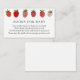 Eine Reservierungskarte für Babydusche. Mit niedlichen Erdbeeren und Gedicht: "EINE KLEINE ANFRAGE, HOFFEN WIR NICHT ZU SCHWIERIG BITTE, EIN BUCH ZU BRINGEN, ANSTATT EINER KARTE, DIE SIE DAS BUCH CHERISIEREN, GUT LIEBT ODER NEUE BITTE UNTERZEICHNEN SIE DIE INNEN MIT EINER BOTSCHAFT VON IHNEN!"
