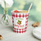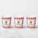 Niedliches Erdbeerthema mit klassischem Picknicktisch, rot-weiß-büffelfarbenem Karo-Hintergrund.