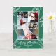 Weihnachts-Grußkarte mit einer Collage aus grünem Foto auf dem Cover, wo Sie fünf Ihrer eigenen Fotos hinzufügen können. Berry Zweige in Weiß bedecken die Grußkarte. Fügen Sie Ihren Familiennamen und das Jahr hinzu!