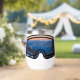 Berthoud Pass Open drink container with ski goggles and a photograph from the top of the pass.