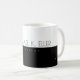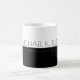 Eine Kaffee-Tasse in Schwarz-Weiß, personalisiert mit Namen und Beruf (Architekt)