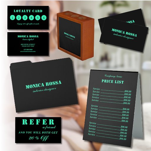 Beruflich Elegant Modernes Neon Aquamarin Black Notizblock