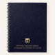 Erleben Sie mit unserem Beruflichen Navy Blue Gold Monogram Spiral Notebook Ihr Erlebnis. Das zunächst gebürstete Goldmonogramm, gepaart mit Ihrem Firmennamen, Ihrer Anschrift und Kontaktinformationen, schmückt das Cover anmutig vor dem Hintergrund eines reichen Imitats blauen Lederdrucks. Dieses exquisite Design fügt nicht nur Ihrer Arbeit eine Touch Eleganz hinzu, sondern verbessert auch Ihr berufliches Image. Egal ob Sie sich an Ideen beteiligen, an Führungskräfte-Meetings teilnehmen oder Mitarbeiter oder Kunden vorstellen, dieses Notizbuch bietet Stil und Funktionalität in einem. Ideal für Berater und Consulting-Unternehmen, macht dieses Notizbuch einen bleibenden Eindruck und behalte gleichzeitig Ihre Noten organisiert und ausgeklügelt.