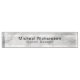Ein Schreibtischschild ist ein kleines, personalisiertes Schild, das typischerweise auf einem Schreibtisch angebracht wird, um die Person zu identifizieren, die diesen Arbeitsbereich besetzt. Normalerweise zeigt es den Namen der Person an und kann auch ihren Titel, ihre Abteilung oder ihr Firmenlogo enthalten. Schreibtischschilder werden häufig in beruflichen Umgebungen wie Büros, Empfängen oder Konferenzräumen verwendet, um eine Touch von Professionalität zu schaffen und Besuchern oder Kollegen zu helfen, Personen leicht zu identifizieren.