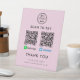 Beruflich Cash App Venmo QR Code Scan zu Pay Pink Boost Ihr Unternehmen kontaktlose Zahlungsoptionen mit diesem beruflichen Cash App Venmo QR Code Scan zur Bezahlung Logo Podestal. Dieses schlichte und stilvolle Schild eignet sich perfekt für die Anzeige an Ihrem Kasse-Schalter, am Restauranttisch oder überall dort, wo die Kunden einfach scannen und bezahlen können. Passen Sie das Design mit Ihrem Firmenlogo an und personalisieren Sie es mit einer Nachricht.
