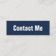 Diese Mini-Visitenkarte sagt "Kontakt mir" auf der Vorderseite der Visitenkarte. Die Rückseite der Mini-Visitenkarte kann mit Ihrem Namen und Ihren Kontaktinformationen angepasst werden. Diese dunkelblaue Mini-Visitenkarte hat weißen Text.
