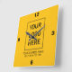 Diese atemberaubende Wanduhr macht eine kühne Aussage, während Sie pünktlich behalten werden. Upgrade Ihrer beruflichen Umgebung und Präsentation Ihrer Marke mit dieser schlanken, modernen Uhr.Berufliches Business-Logo und Text Company Gelbe Uhr
