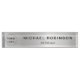 Fügen Sie Ihre eigene Logo Führungskraft Gray Foil Metallic Stainless Steel Minimalistisch Business Name Plate mit schwarzen Buchstaben Typografie für den mit Monogramm fügen Sie Ihren eigenen Namen und Beruf oder Job-Titel. Einfache Anpassung von Namen und Geschäftslogo.