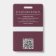 Erhöhen Sie Ihre Arbeitsplatzkennung mit diesem benutzerdefinierten Beruflichen ID-Abzeichen. Dieses elegante und moderne Abzeichen, das für Geschäftsleute, Manager und Teammitglieder konzipiert ist, sorgt für eine klare Identifikation und beinhaltet gleichzeitig eine Touch von Eleganz. Funktionen: (1) Vorderseite: Anzeigen Ihres Namens, Ihres Titels, Ihres Firmennamens und eines beruflichen Fotos für eine einfache Erkennung. (2) Zurück: Enthält Kontaktinformationen und einen scannbaren QR-Code für den schnellen Zugriff auf Ihre Website, Ihr Portfolio oder Ihr berufliches Profil. (3) Stilvoller Maroon, grau-weiße Farbe mit reiner Typografie für ein poliertes, berufliches Aussehen. (4) Ideal für Konferenzen, Firmenveranstaltungen oder Büroalltag.