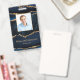 Dieses moderne, elegante ID-Abzeichen mit marineblau-goldfarbenem Adagate und einer goldenen Grenze um Ihr individuelles Foto und Ihren Namen und Geschäftstitel ganz unten. Ideal für echte Anwesen-, Notar-, Event-Planer, Friseur, Make-up-Künstler und alle Geschäftsleute, die ein glänzendes modernes Aussehen gewollt haben. Karo die Kollektion für weitere Produkte mit diesem Design. Wenn Sie dieses Design in anderen Farben haben möchten oder Designschwächen benötigen, kontaktieren Sie mich bitte über Zazzle.