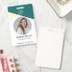 Dieses Abzeichen ist ein moderner und beruflicher Weg, Mitarbeiter am Arbeitsplatz zu identifizieren. Es ist mit einer blauen und weißen Farbpalette konzipiert und verfügt sowohl über eine eindeutige ID-Nummer als auch über ein Foto zur einfachen Identifizierung.