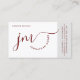 Moderne Berufliche Krümmung Weiß und Burgund Extravagante Script Monogram Business Card.