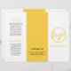 Berufliche und moderne Dreierbroschüre mit schlichtem und elegantem Design in Gelb und Weiß. Die Frontblende hat Ihr Logo und Ihren Firmennamen. Die Rückseite hat Ihre Kontaktinformationen und das Innenfaltfeld hat zwei Header und Textfelder. Verwenden Sie die Vorlage, um Informationen über Ihr Unternehmen auf den äußeren Tafeln und eine Preisliste / Service-Menü in der mittleren Leiste hinzuzufügen. TIPP ENTWICKLUNG: Sie können Text und Hintergrund in jede gewünschte Farbe ändern, indem Sie auf den Button "Anpassen" klicken.
